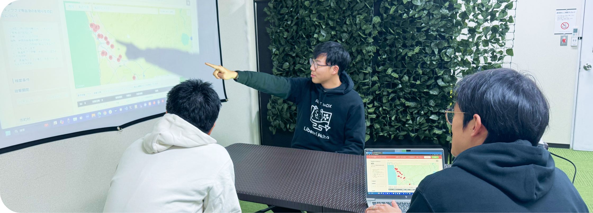 地域住民の安全を守るため、クマの出没情報をリアルタイムに地図上にマッピング。 自治体と連携し、迅速な注意喚起を可能にするシステムを構築しました。